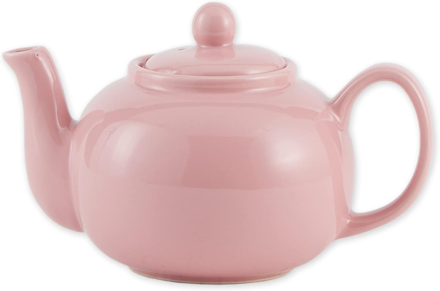 Measures 9.5x6x6 inches. Our generously large 42 ounce capacity teapot is the perfect size for entertaining or family tea time. The spout has large drain holes to help keep it clear of tea leaves, making it easier to pour. Made of seamless sturdy stoneware one-piece construction. Microwave and dishwasher safe.