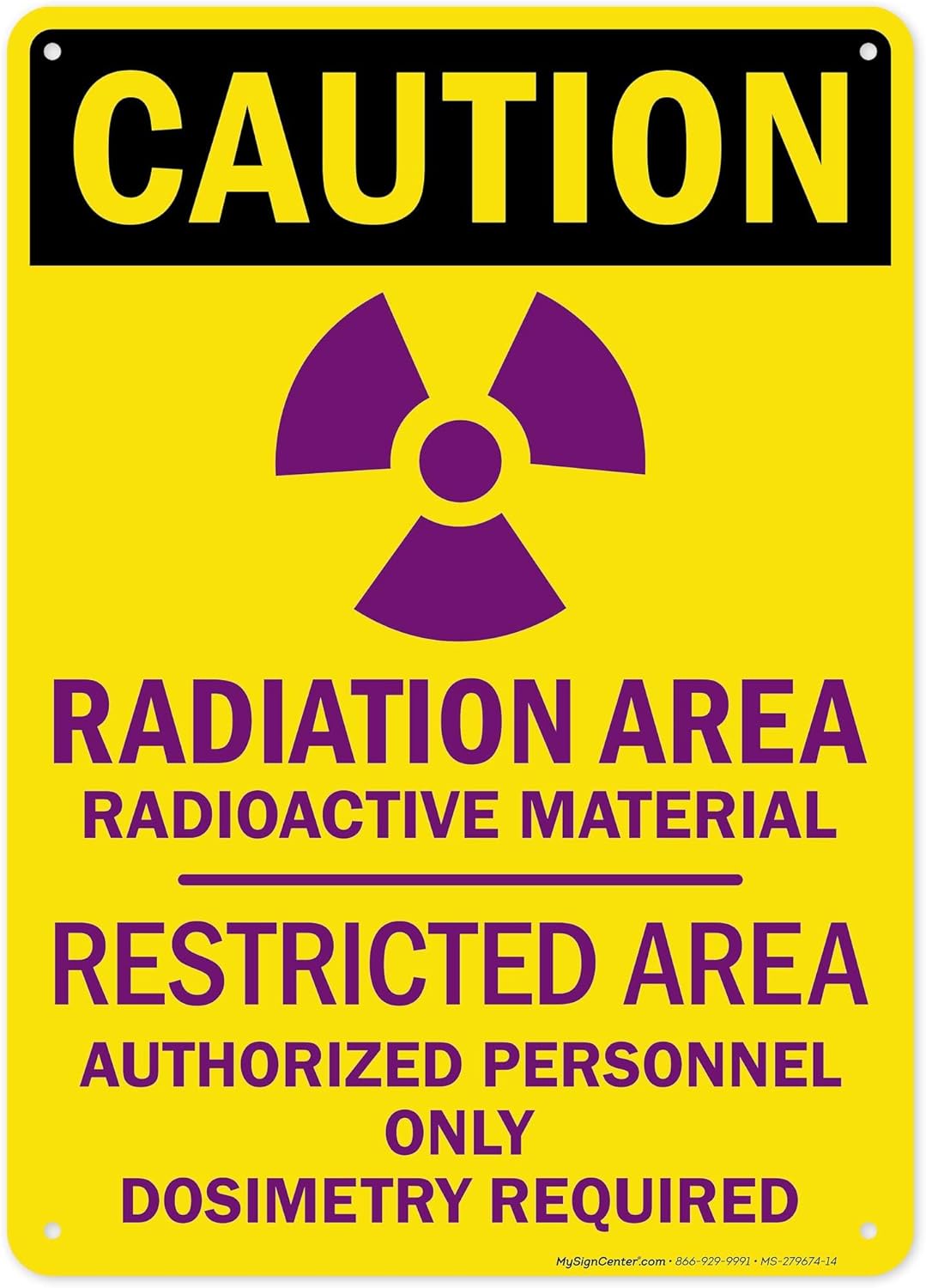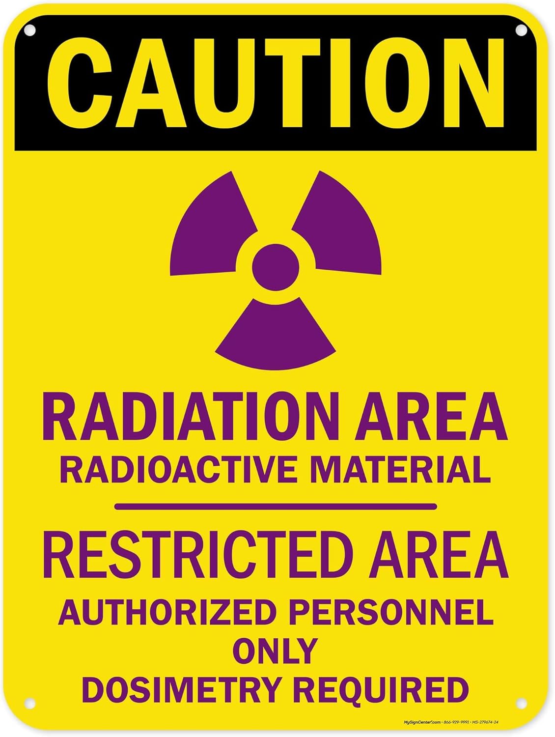 Caution Radiation Area Radioactive Materials Restricted Area Authorized Personnel Only Sign, 24x30 Inches, 55 mil thick HDPS (high density polystyrene), Made in USA by My Sign Center