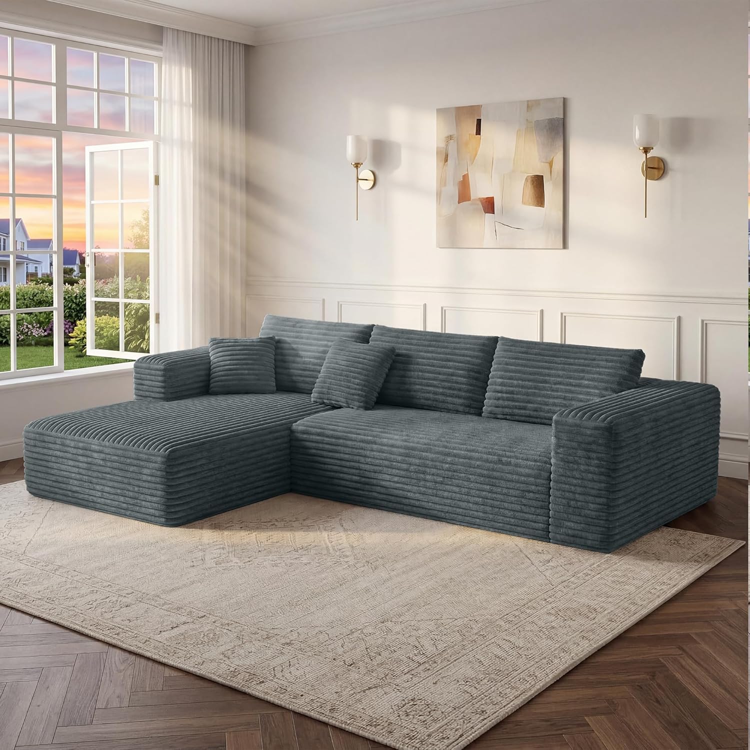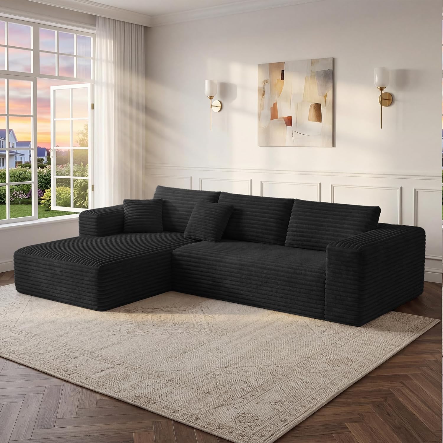 | Manufacturer Warranty Description | Our 24/7 support team is always ready to assist with tracking your comfy modular sofa. Wipe with a damp cloth to avoid excess moisture. Use a mild detergent for spot cleaning. Avoid direct sunlight and heat sources!, Please note: to ensure safe transit and easy indoor handling, this cloud sectional couch is shipped in 2 separate boxes which may arrive at different times. If you receive only one package, please allow 1-2 business days to wait for the next package. |